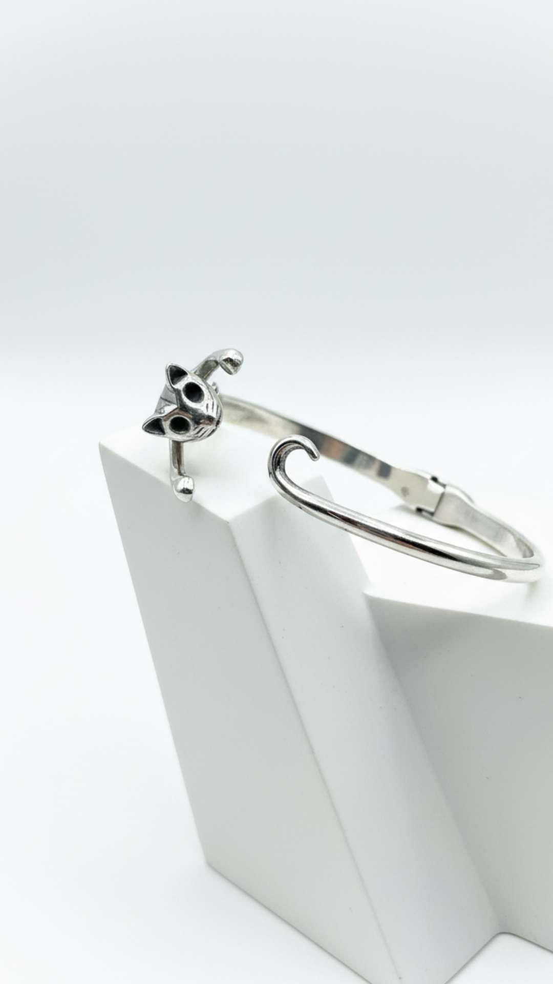 Un bracelet en argent à tête de chat allie finesse et caractère. Sa chaîne délicate met en valeur un motif félin finement sculpté, symbole de grâce et d’indépendance.